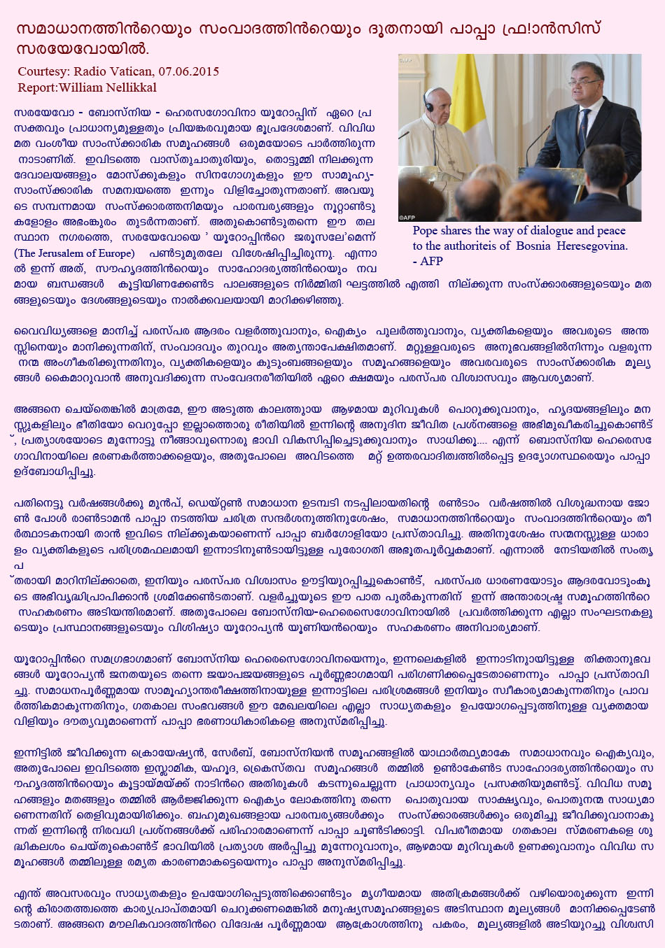 സമാധാനത്തില്‍ന്‍റെയും സംവാദത്തിന്‍റെയും ദൂതനായി പാപ്പാ ഫ്ര!ാന്‍സിസ് സരയേവോയില്